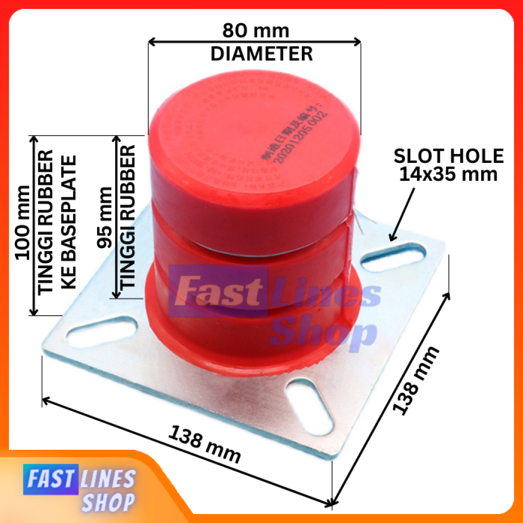 Karet Peredam Lift dapat di gunakan untuk lift penumpang, lift barang, Bed Lift, dllSpesifikasi Produk :- Type : JHQ-A1- Diameter Rubber : 80 mm- Tinggi Rubber : 95 mm- Tinggi Rubber dari bawah Baseplate : 100 mm- Kapasitas : 450 - 2100 Kg- Untuk Speed Lift : ≤ 0.63 m/s